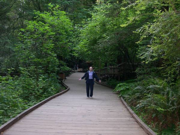 Jeff took this photo of me exultant amid the beauty of Muir Woods, May 2003.