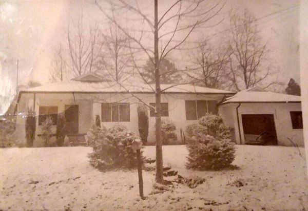 Daddy photographed our home after a rare snowfall, probably in 1958 or 1959.