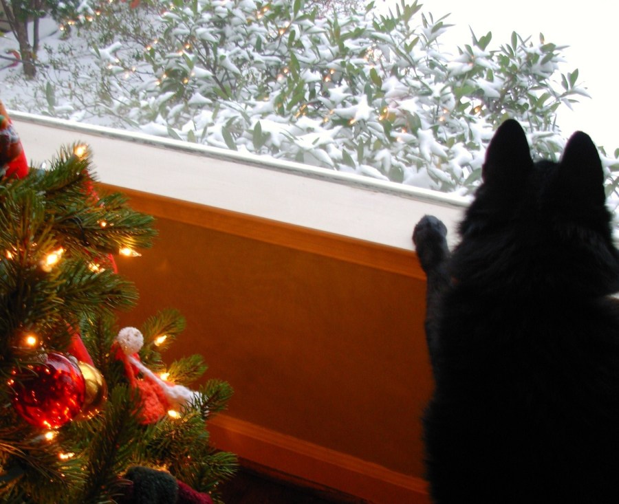 Pasha watching the snow fall at Christmas time, Alexandria, Virginia 2010