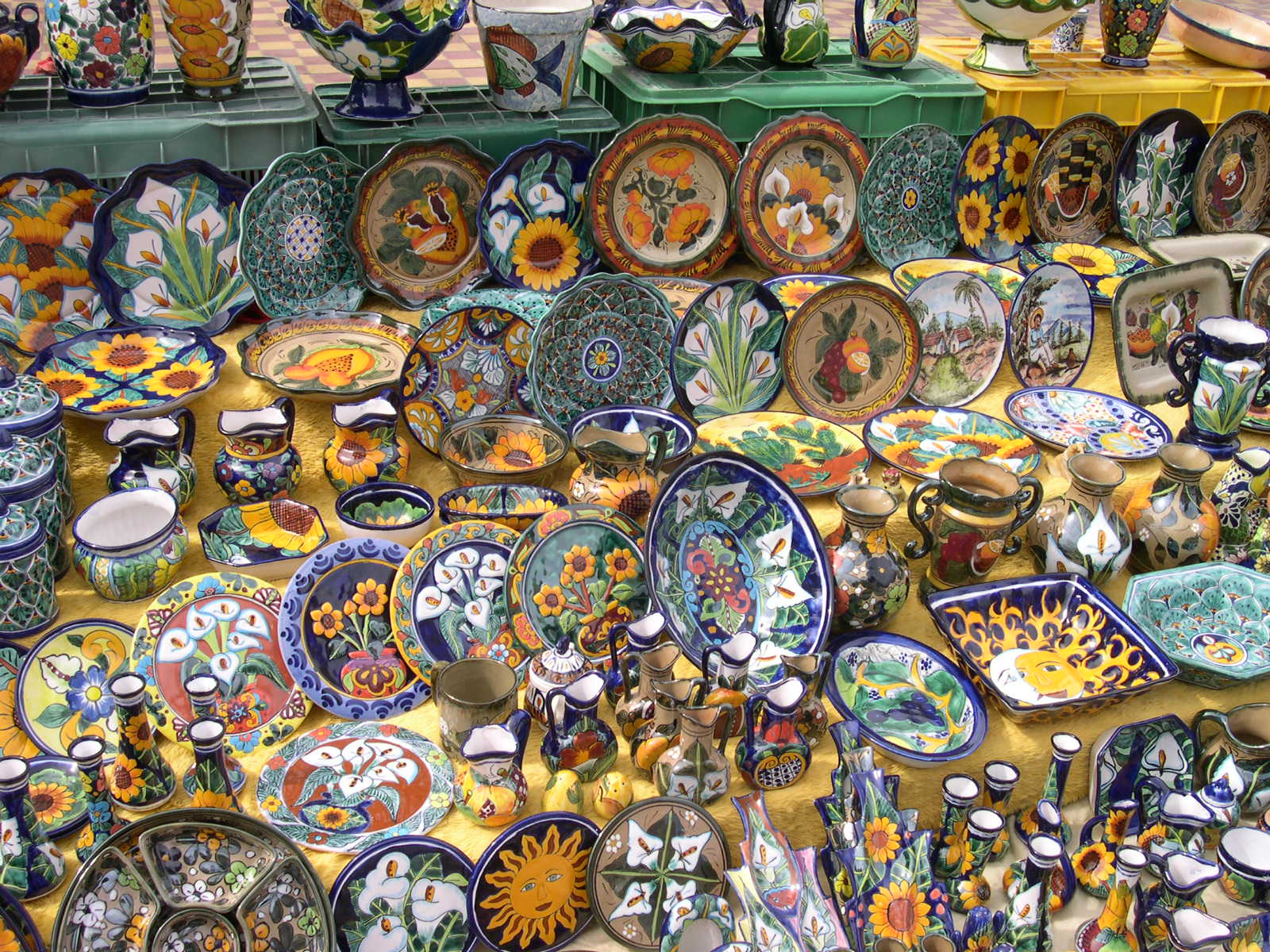 Pottery on display in an outdoor market, Concordia, Mexico 2004
