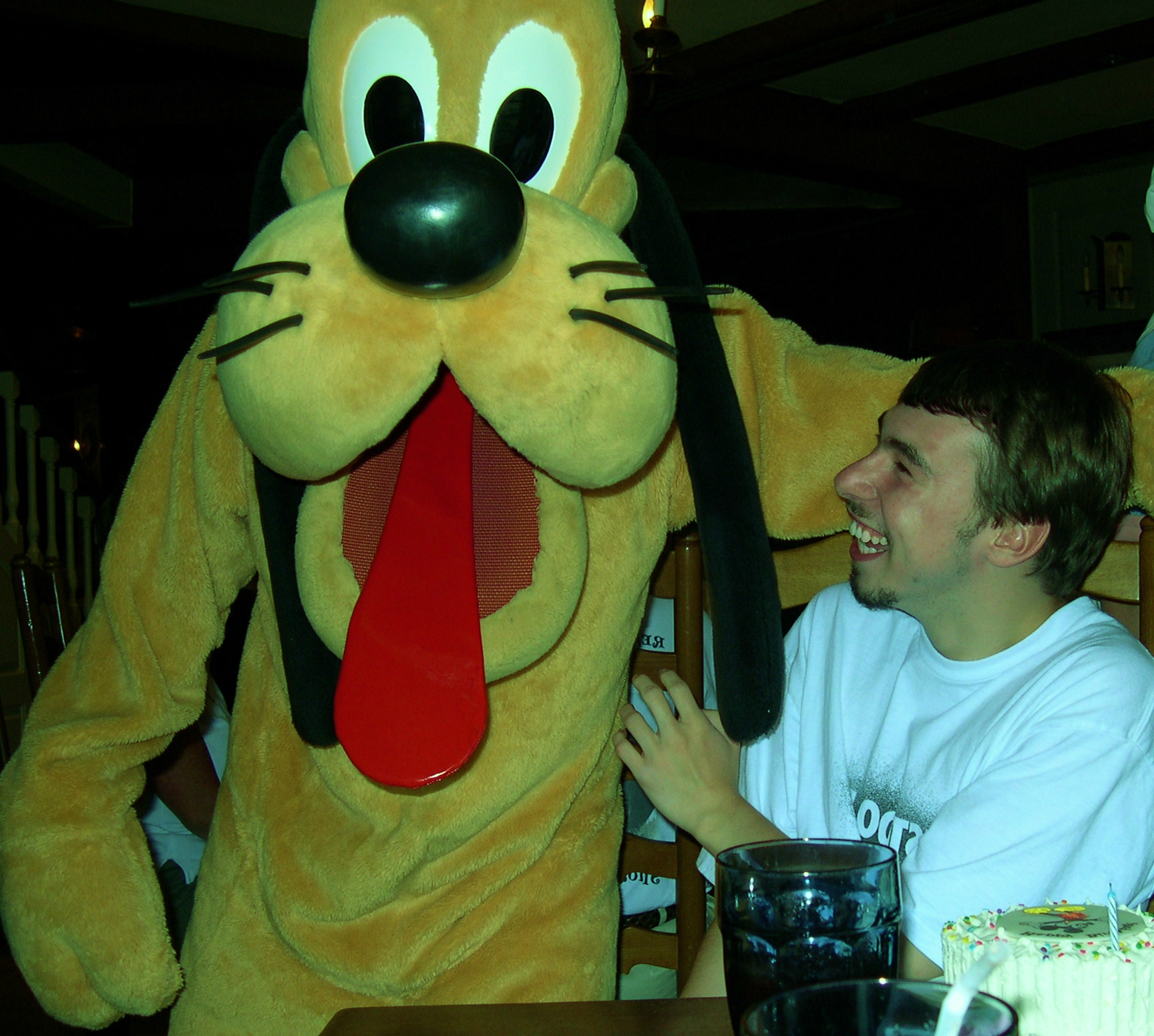 Pluto clowns with Matt at Walt Disney World in Florida, 2004