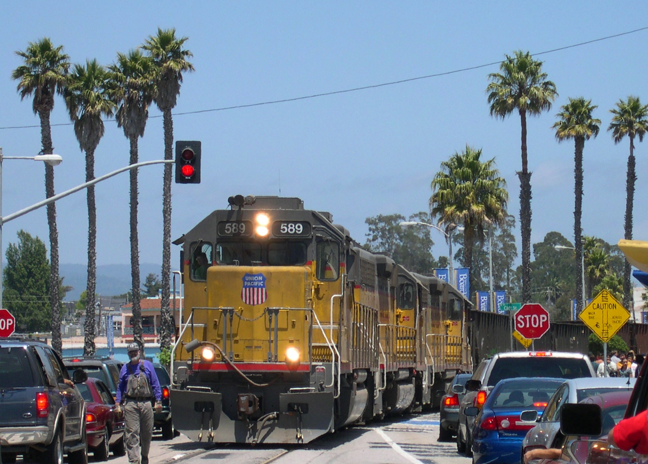 There’s never a shortage of surprises in California, and that’s part of why it was so much fun to live there. One sunny day in Santa Cruz, we were waiting in line at a four-way intersection, assuming the traffic backup was just the normal beach crowds. But then we saw something we’d never seen before, and haven’t seen since: a freight train coming right down the center of the city street, which trains apparently share with cars whenever they pass through.