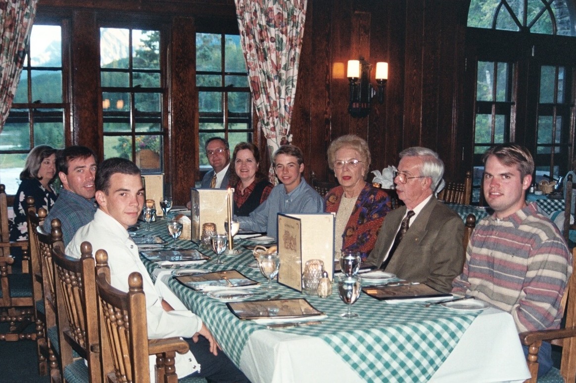 In 1999, my parents celebrated their 50th anniversary, and most of the family were able to travel to Banff to help them celebrate. My brother Al, his sons Aaron and Seth, my nieces April and Cami, and April’s husband Jeremiah were all unable to attend, but the rest of the motley crew had a great time being together and enjoying the stunning scenery. I’ll now bore you with a few photos snapped on that very brief but memorable trip – if you’d like to see them, scroll on! The original post with comments from one year ago can be seen here.