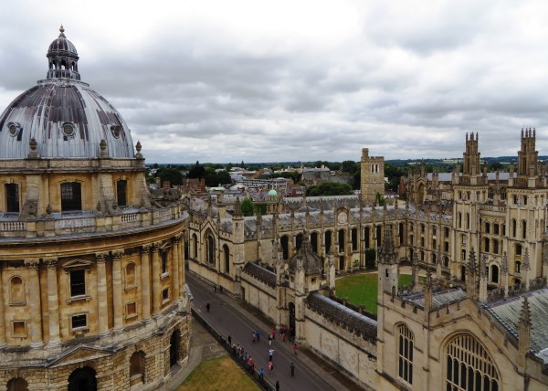 From the tower, Radcliffe Camera and the “dreaming spires” of Oxford, June 2017