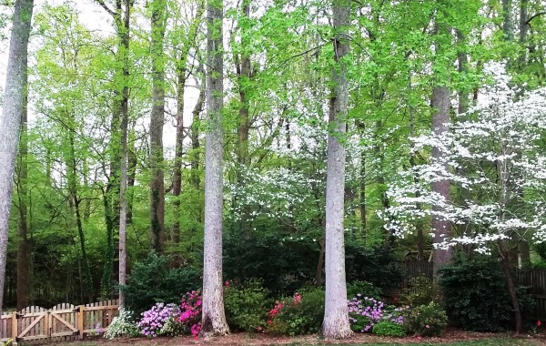 Finally, in the category of ordinary treasures, here’s a photo of my azaleas and dogwoods just starting to bloom. There’s nothing exotic about this everyday scene, but it’s one of the most meaningful aspects of home for me.