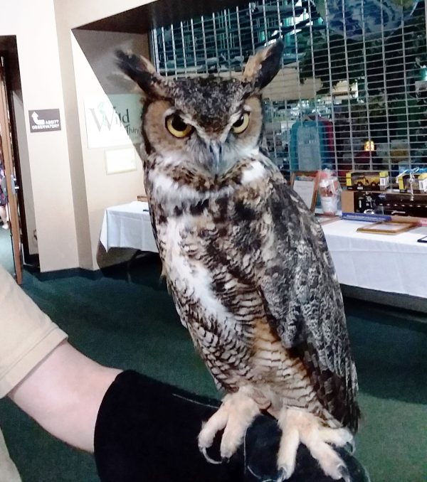 Even on an ordinary day, surprises are tucked away if we venture out a bit. Matt and I attended a benefit for St. Jude’s Children’s Research Hospital, and along with more kinds of “free” food than I’ve ever seen in one place, there were other fun discoveries, such as this cautiously friendly fellow, a great horned owl: