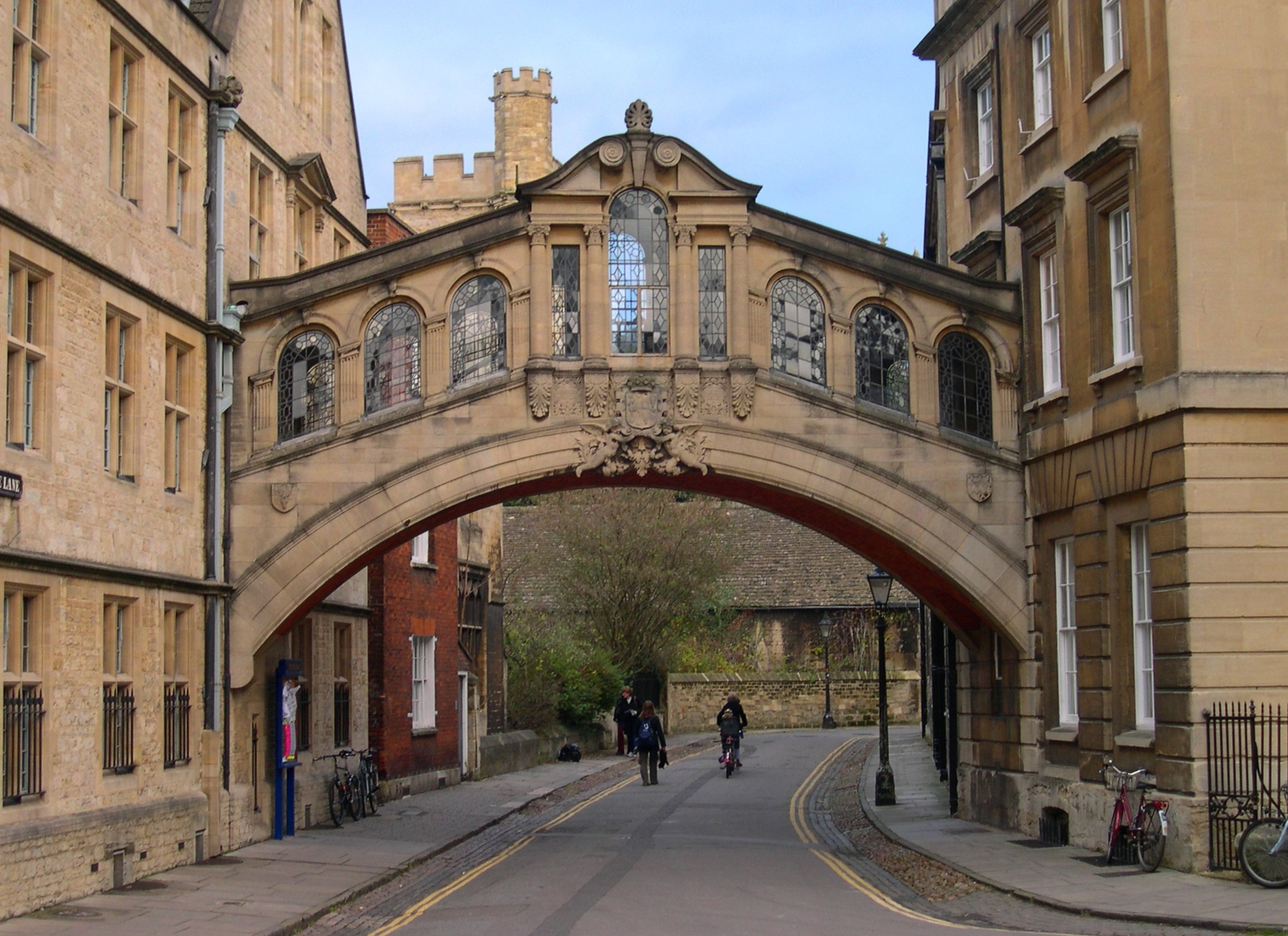 The Hertford Bridge pictured above is part of Hertford College, of the University of Oxford in England. It connects the Old and New Quadrangles of that college, with administrative offices in the older building and student accommodations in the newer one. Normally we wouldn’t describe buildings that were constructed over 100 years ago as “new” but when some of the older ones go back to medieval times, new is a relative term.
