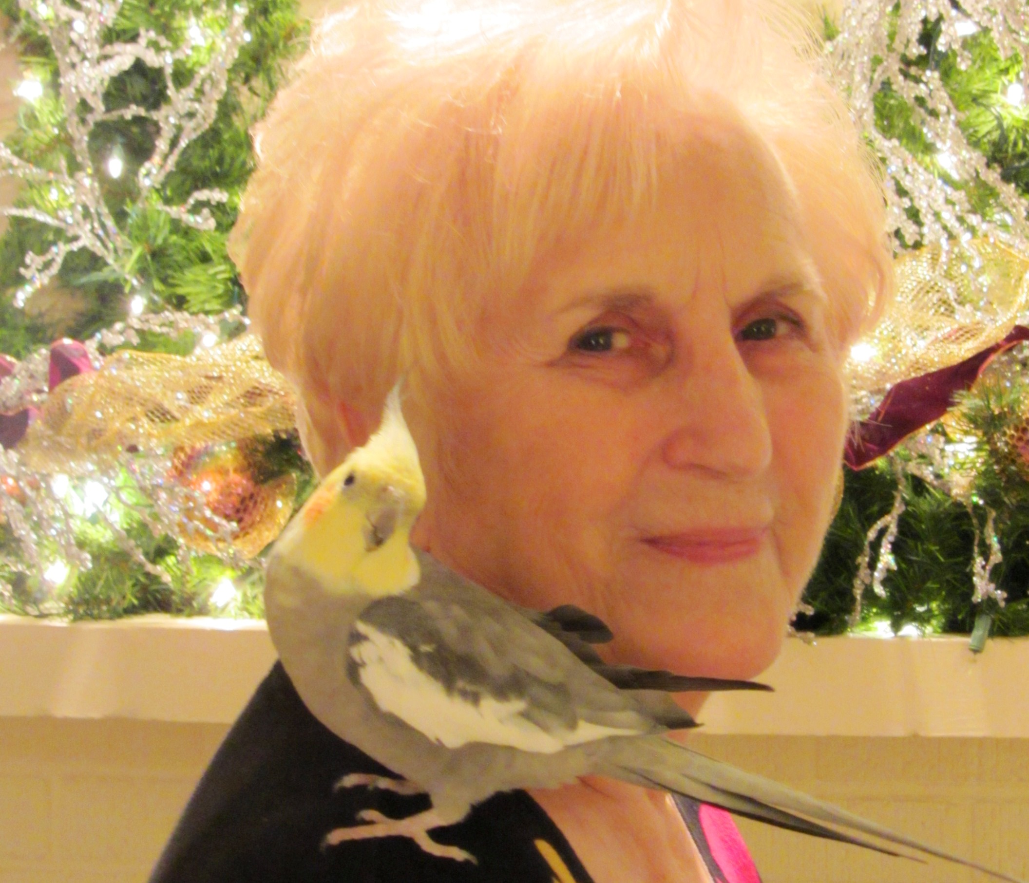 Sweetie with a sweetie: Aunt Peggy with her winsome cockatiel, December 2011