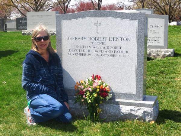 Kathy at Jeff’s grave, Arlington National Cemetery, April 2018