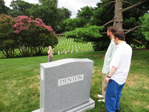 He is not shy, but like his father and grandfather, he’s not particularly chatty. He did tell me proudly that he knows how to take pictures “with any kind of camera.” Thus I was able to indulge in one of my favorite activities, taking pictures of other people taking pictures. This one, of course, is extra-special. This was the first time Drew or Grady had ever been at Jeff’s grave with Matt or me.