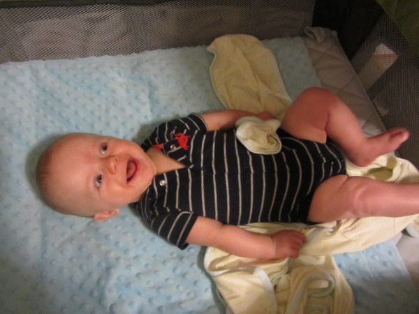 Yes, he’s a cutie, I’m glad you agree! We just did Skype with him for the first time tonight, and he kept lunging at the screen (he’s into lunging right now) and it made him look giant, like in Honey I Blew Up the Baby. I sang him “The Rainbow Connection” for a lullaby. He is SO ready to have some actual food, no wonder he was smiling. But he’s a pretty happy little guy all the way around. I just love babies.