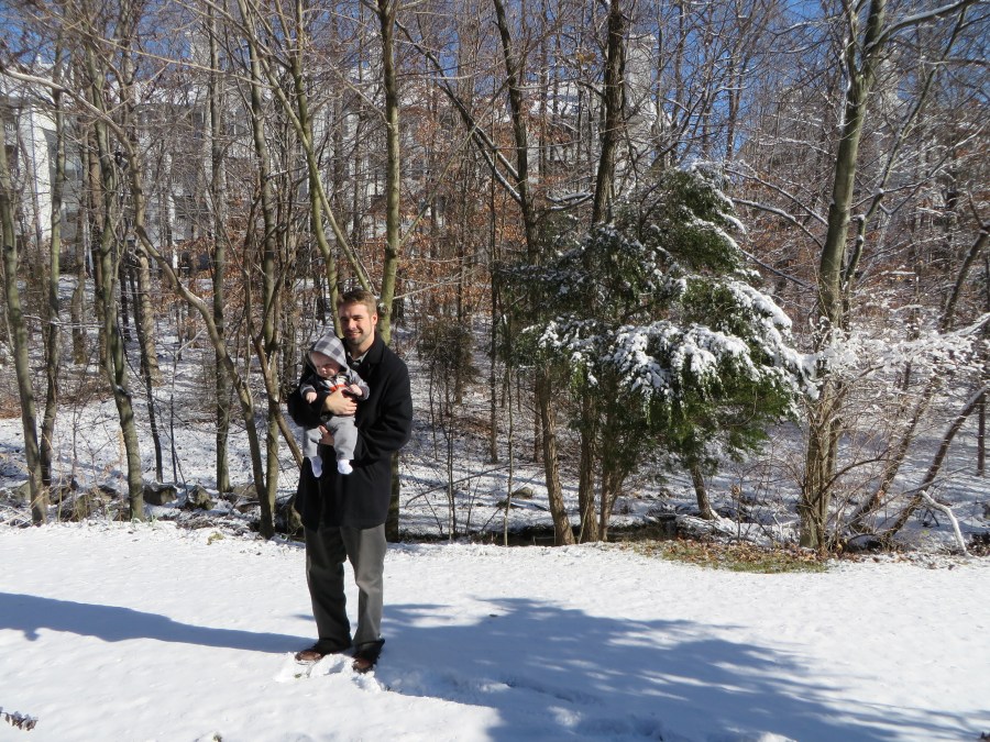 Here he is with his Daddy, behind MeMe and PaPa’s home in Alexandria, January 3, 2014.