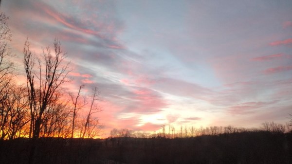 Free– and priceless: the view out my upstairs window last Friday, April 2018.