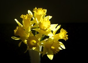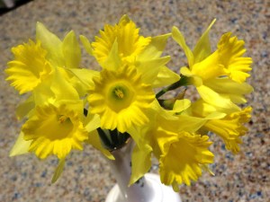 I think I’ve mentioned here before that daffodils have always been my favorite flowers. I still have a dried one from the bunch Jeff brought to me at the hospital on the morning Drew was born. They seem irrepressibly cheerful to me, their yellow color and unique form putting a smile on my face no matter how I might feel before I first spot them.