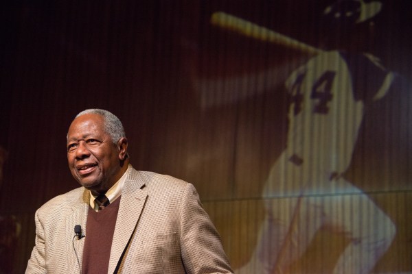 Hank Aaron in 2015. Photo by Lauren Gerson, Public domain via Wikimedia Commons