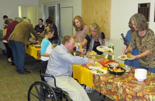 But in 2015, it was just a typical group who gathered at the aging fellowship hall of our church to enjoy one another’s company while sharing a pot luck Thanksgiving meal. To quote from Arlo Guthrie’s famous song about another church-building Thanksgiving dinner, it was a meal “that couldn’t be beat.”