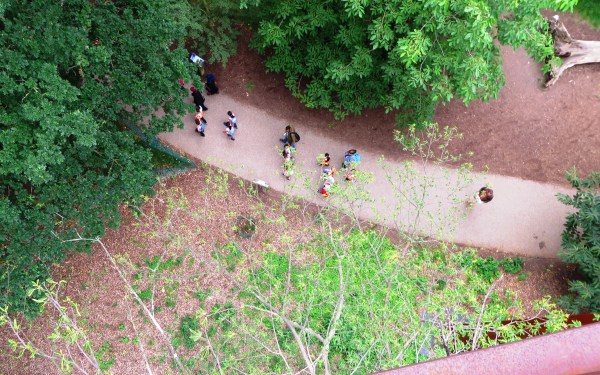 Schoolchildren at Kew Gardens, looking even smaller from the Treetop Walkway, July 2017