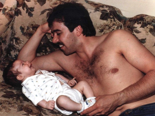 Dental student Jeff with a 1-month-old Drew, spring 1984.